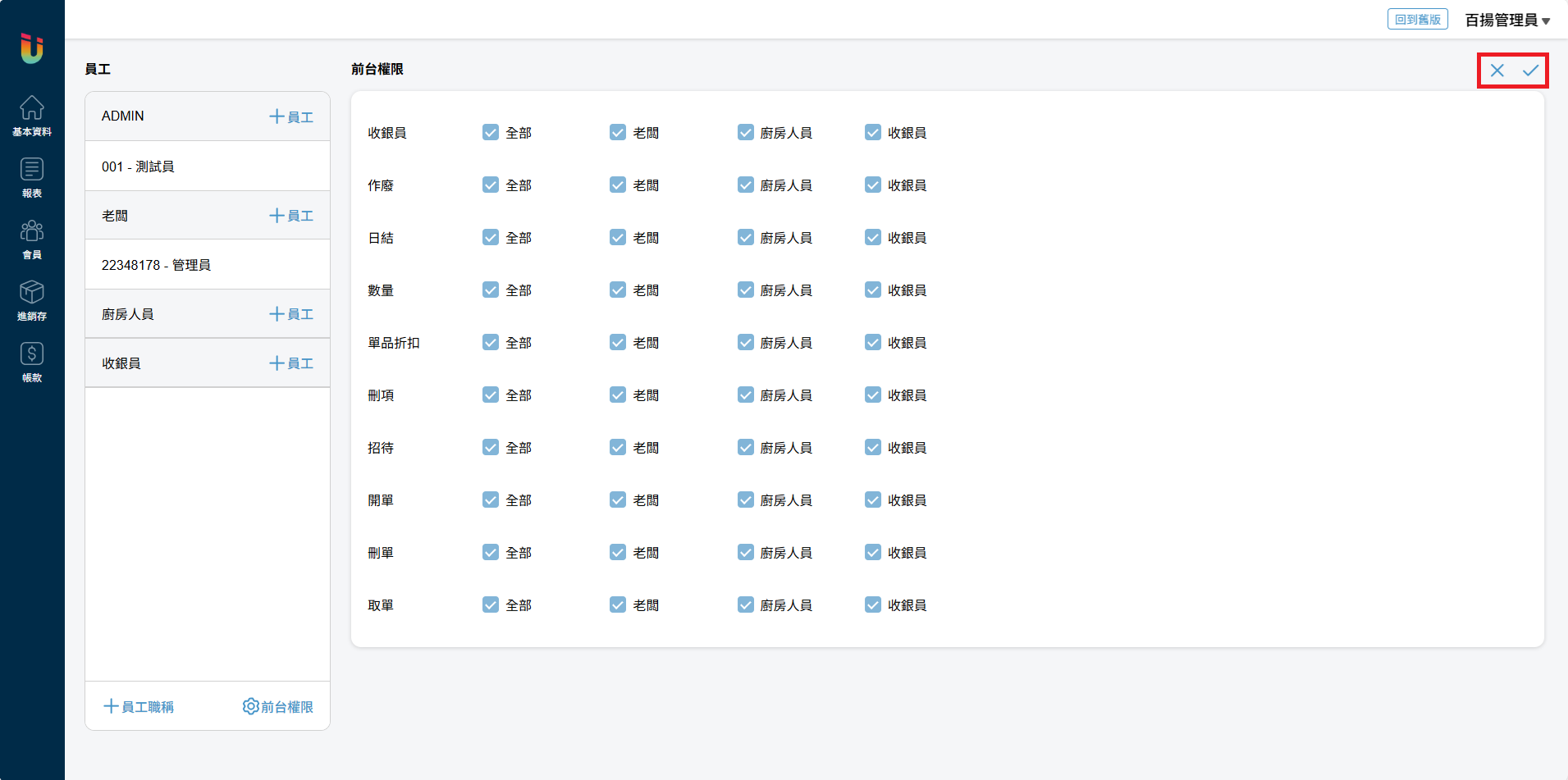 員工的權限與職位相關,將員工移至該職位下將自動套用該職位的權限。