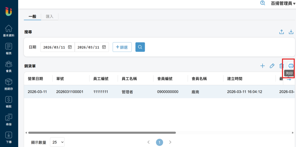 除了前台可以進行銷貨以外,後台雲端網站也可建立銷貨單進行銷貨。