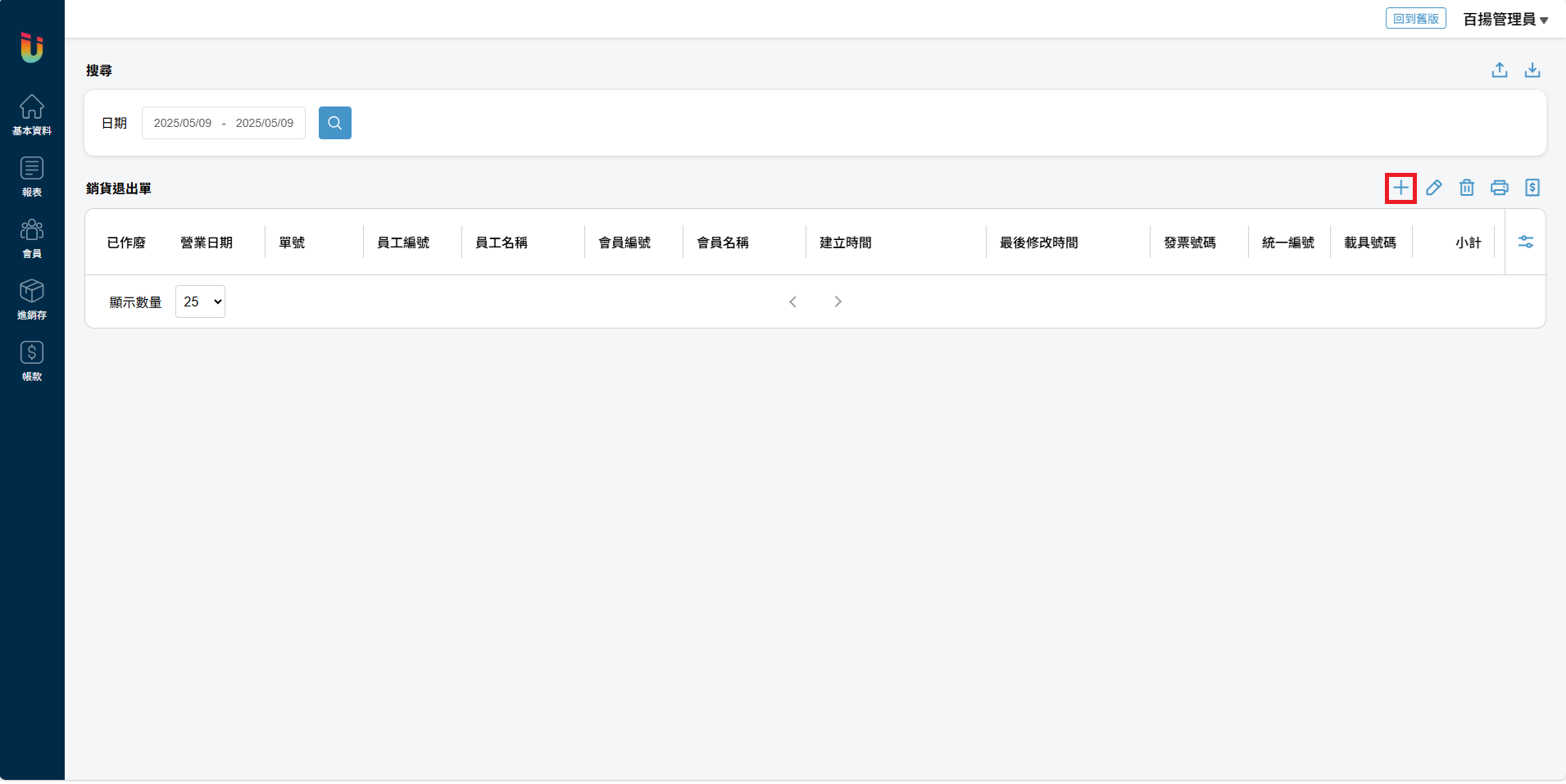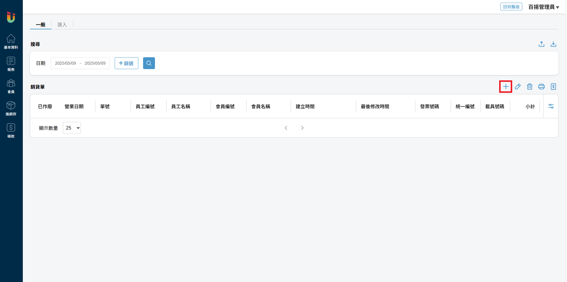 於 [銷貨單] 頁面點擊右方的 [+] 按鈕即可新增銷貨單。