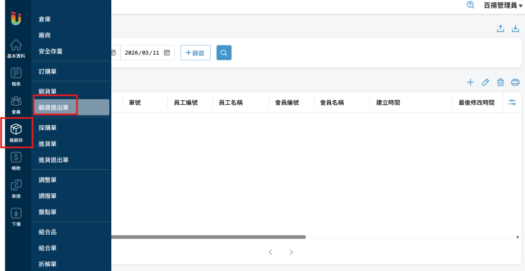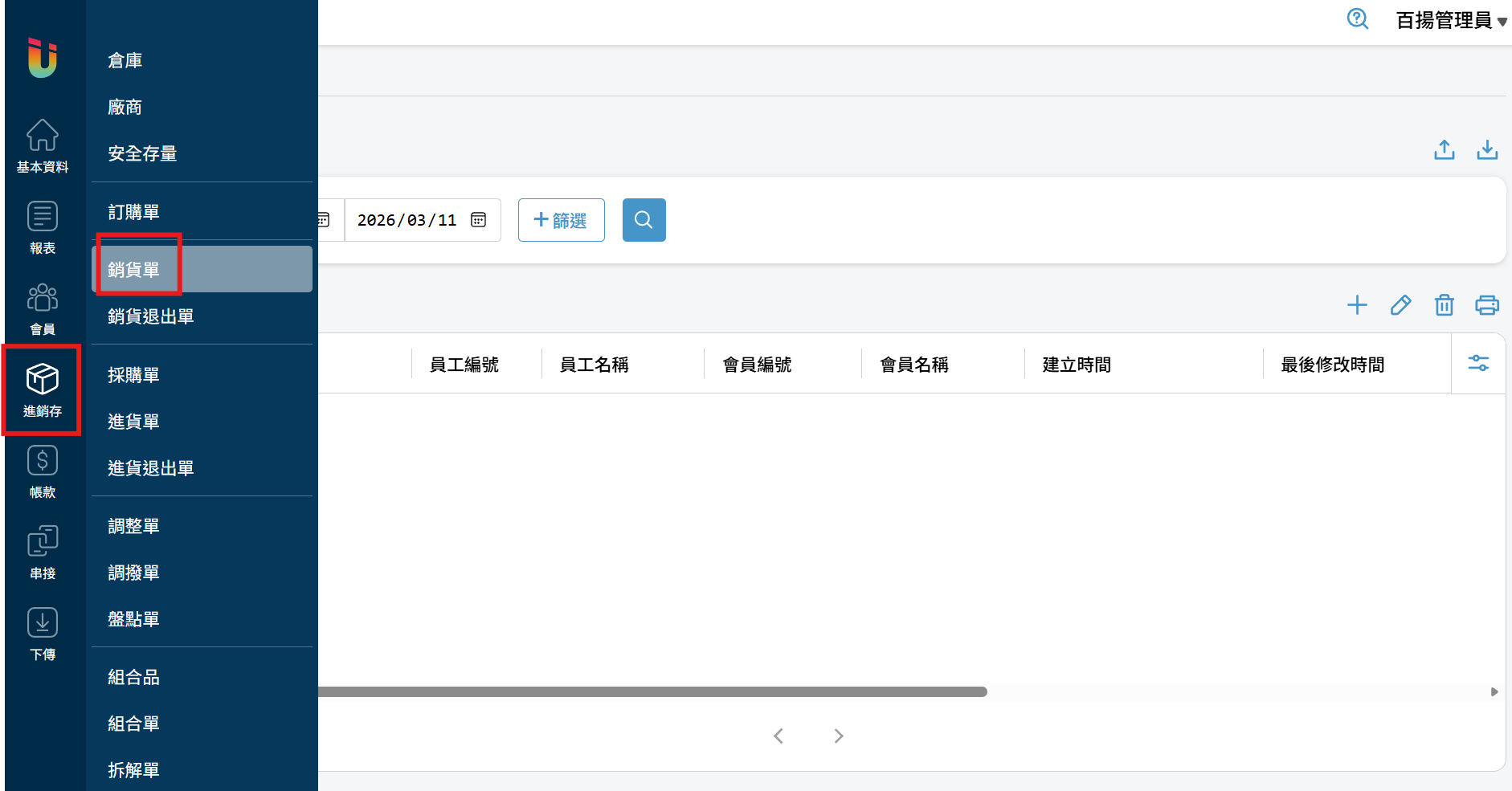 於左方列表點選 [進銷存] > [銷貨單],進入該頁面可以管理銷貨單。