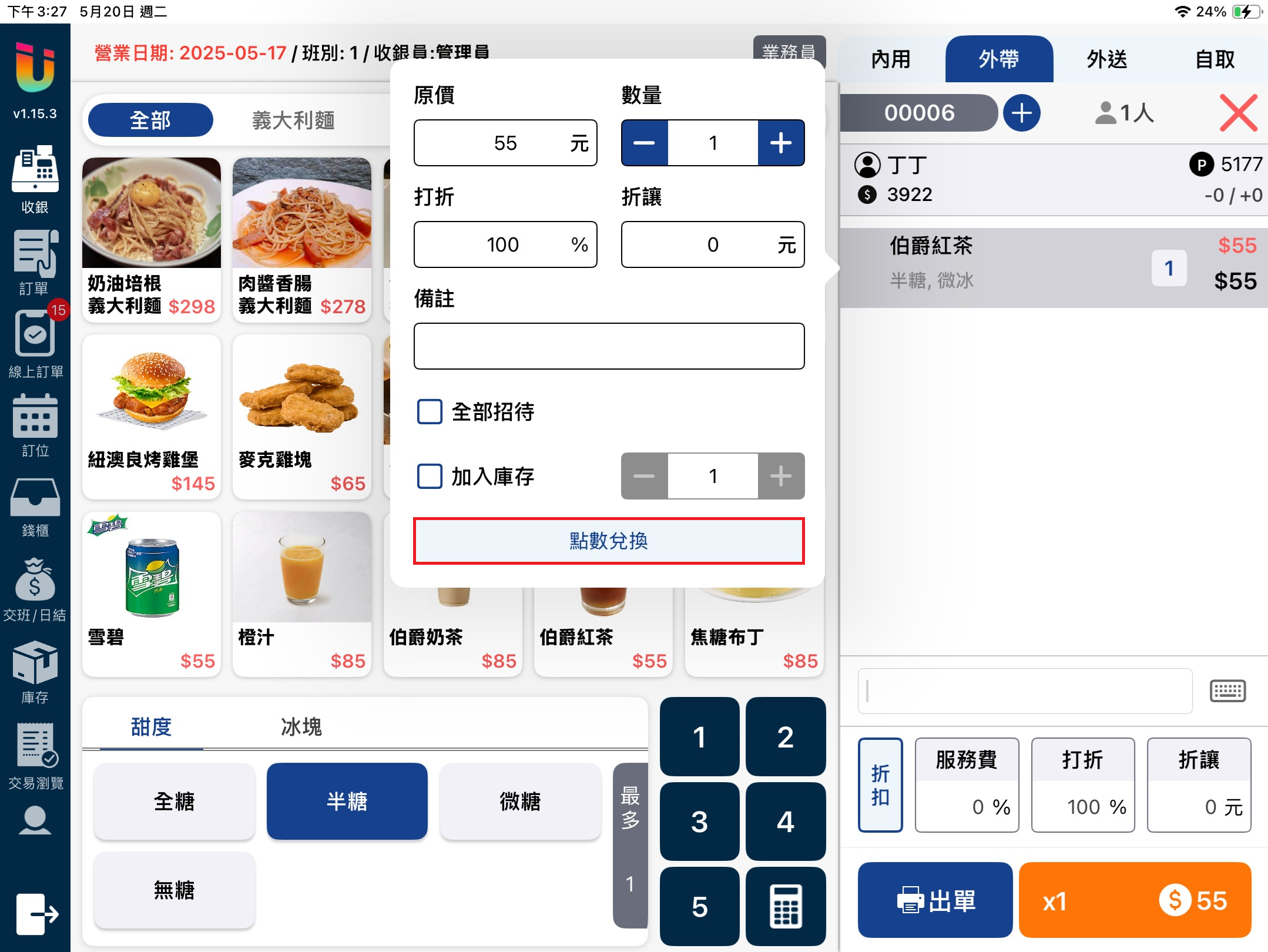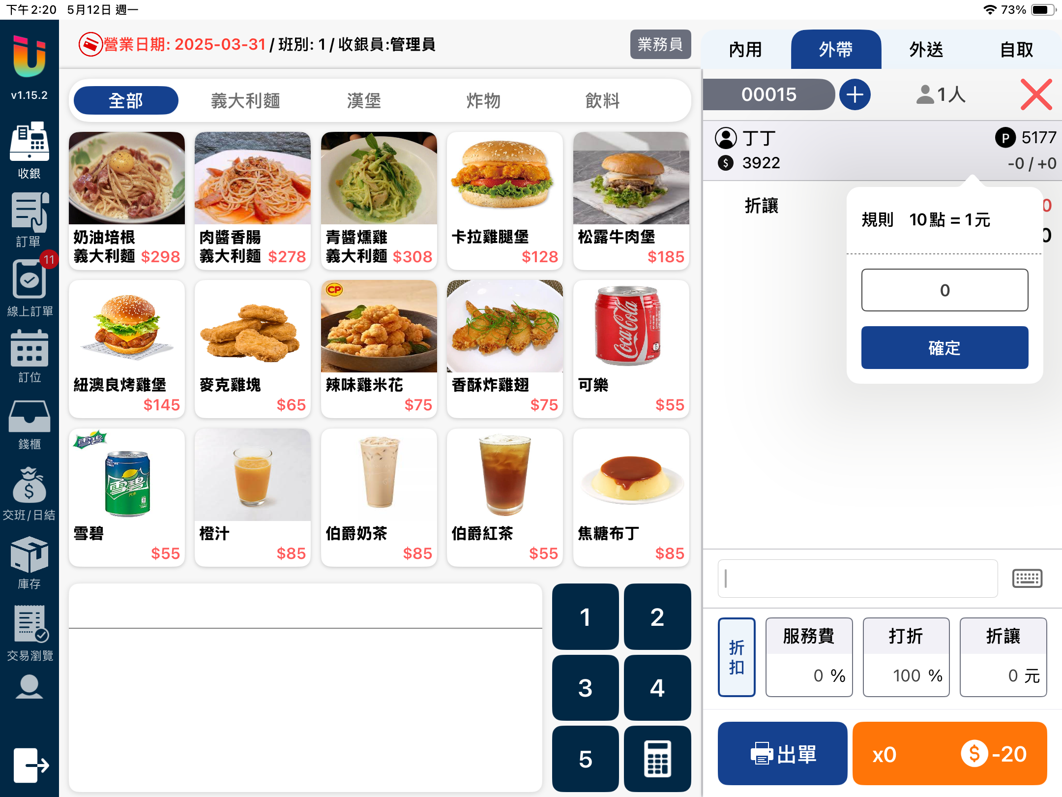 如有設定 [折價名目],則折抵金額會掛在 [折價名目] 所設定的商品上可供報表查詢,如未設定則折抵金額會平均分攤到所有商品上。