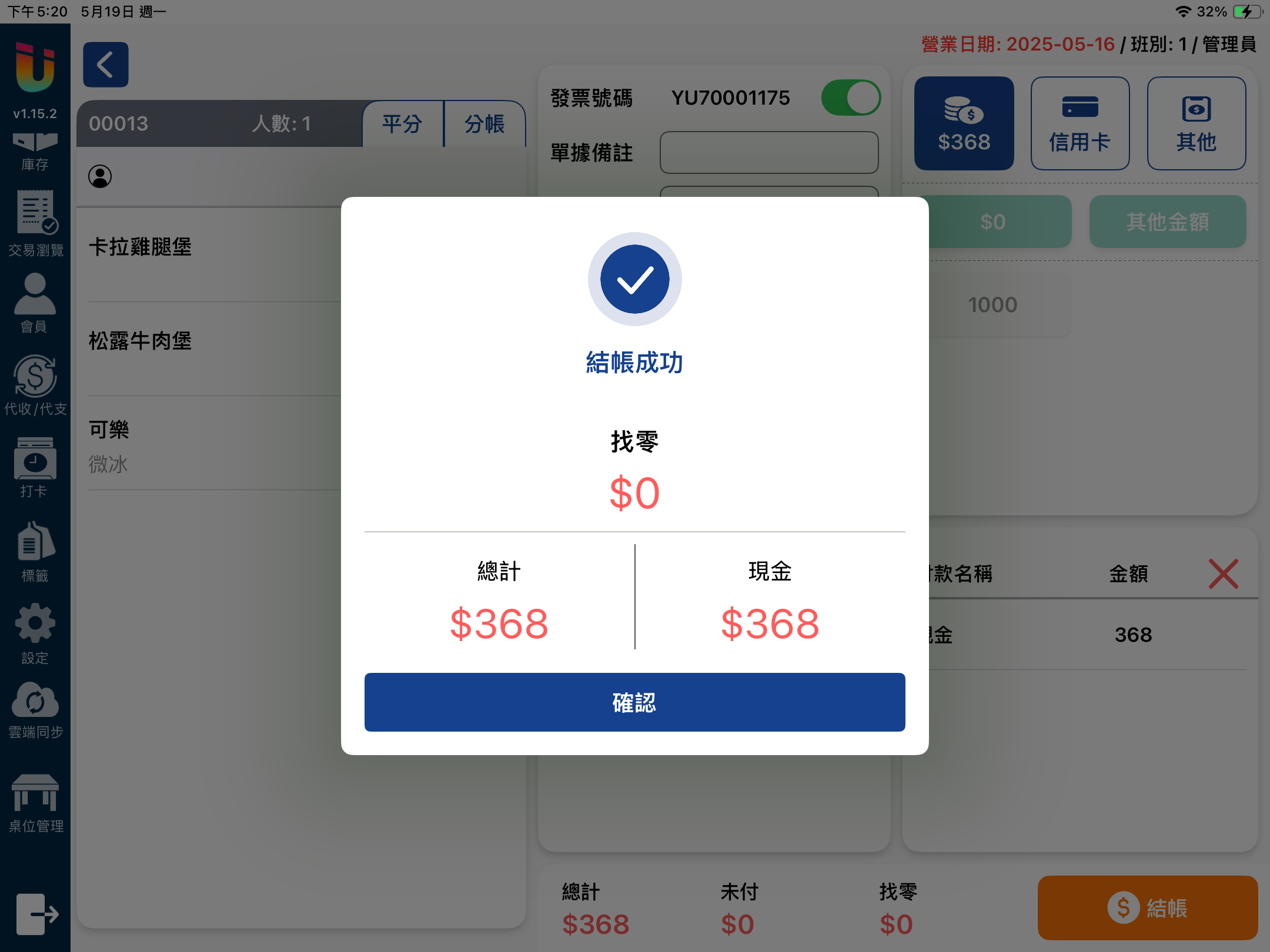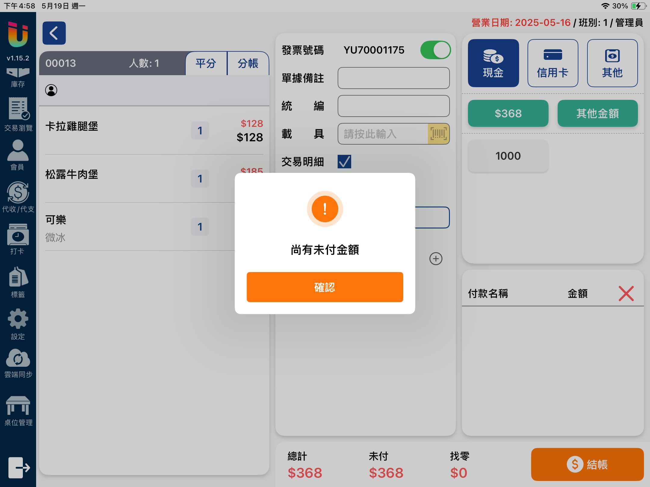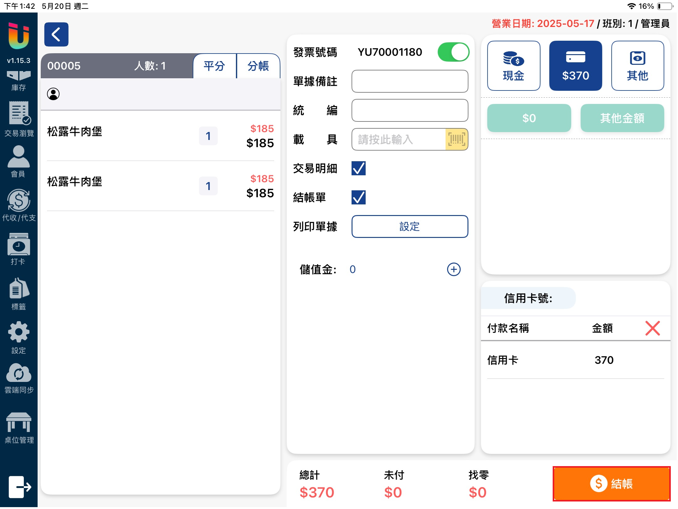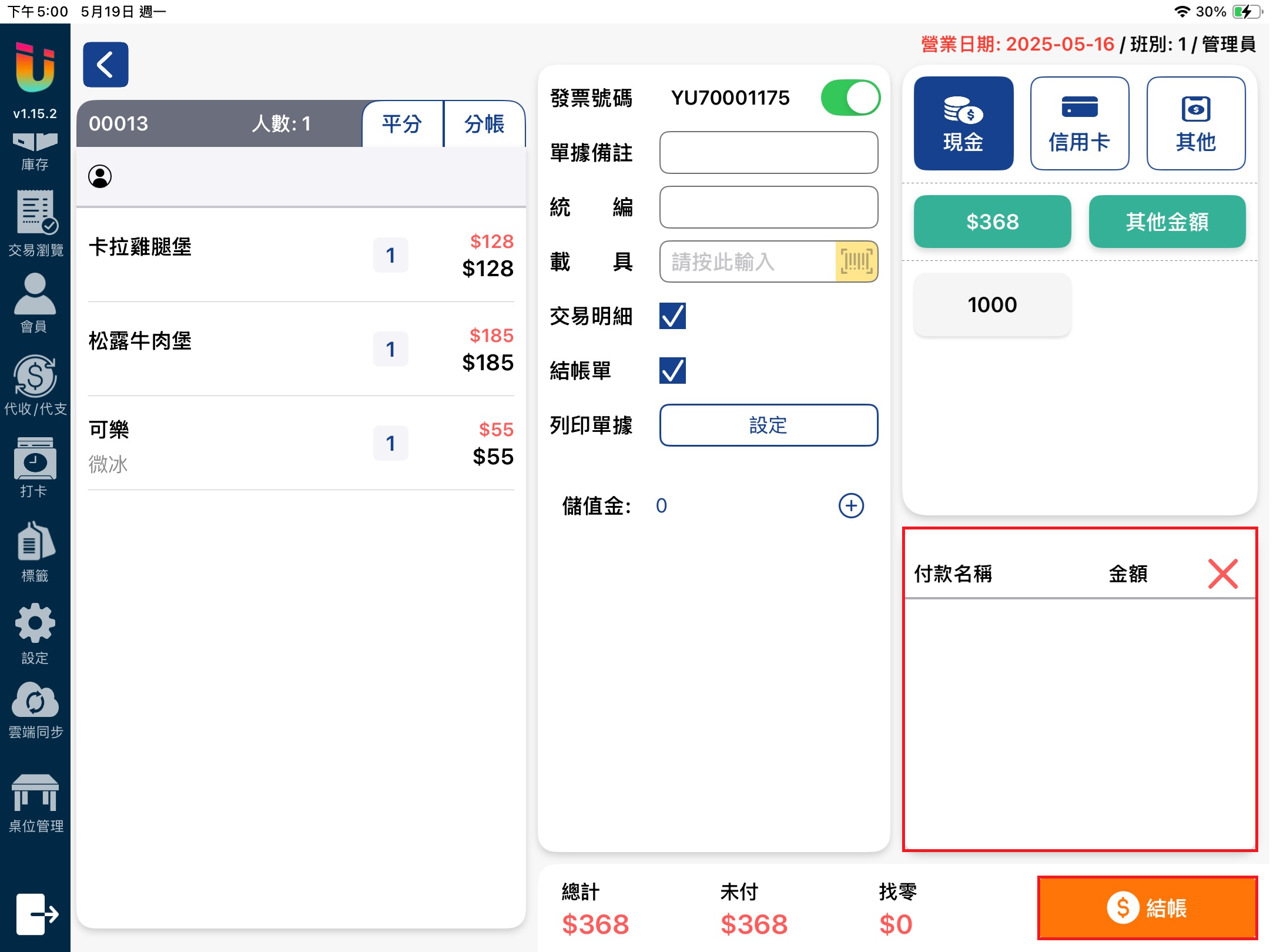 結帳介面