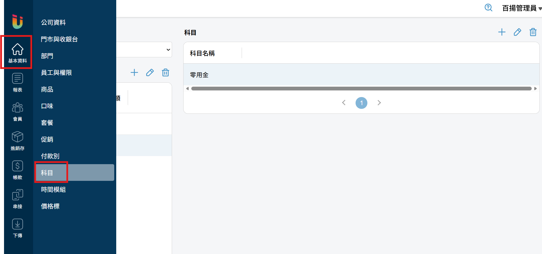 於前台Pos 新增項目前,必須要建立代收代支的 [科目] 資料。