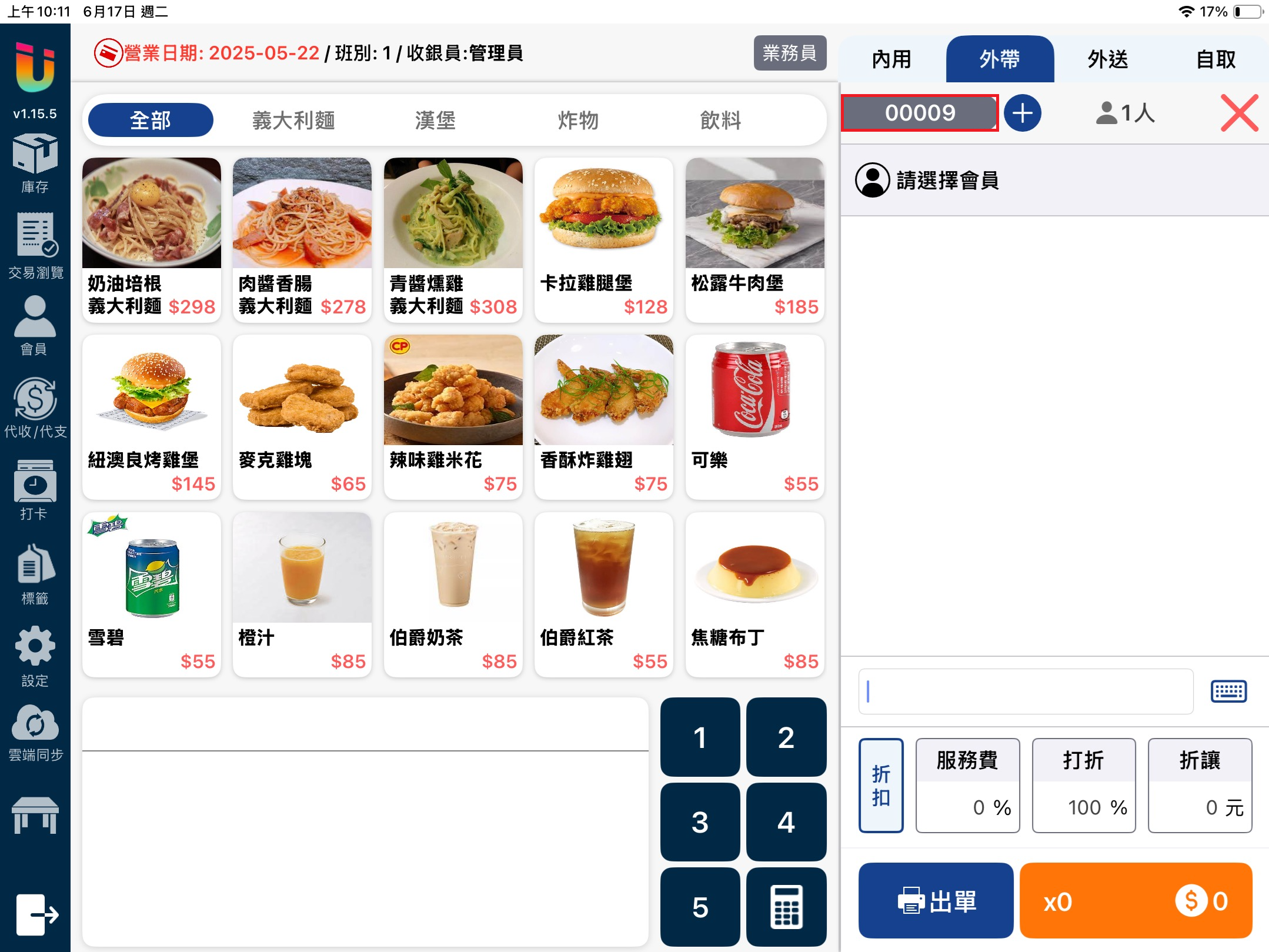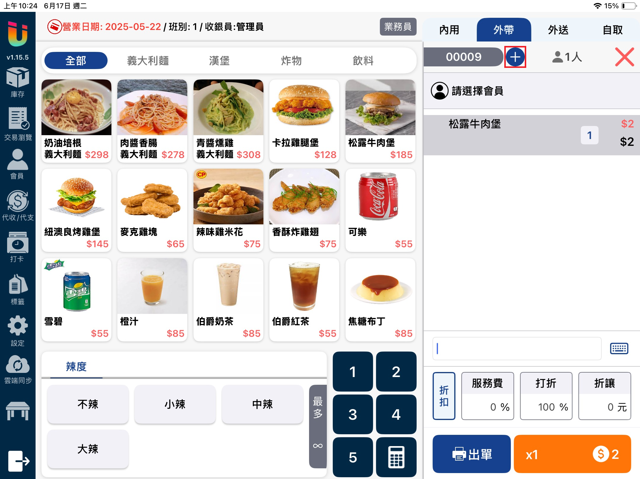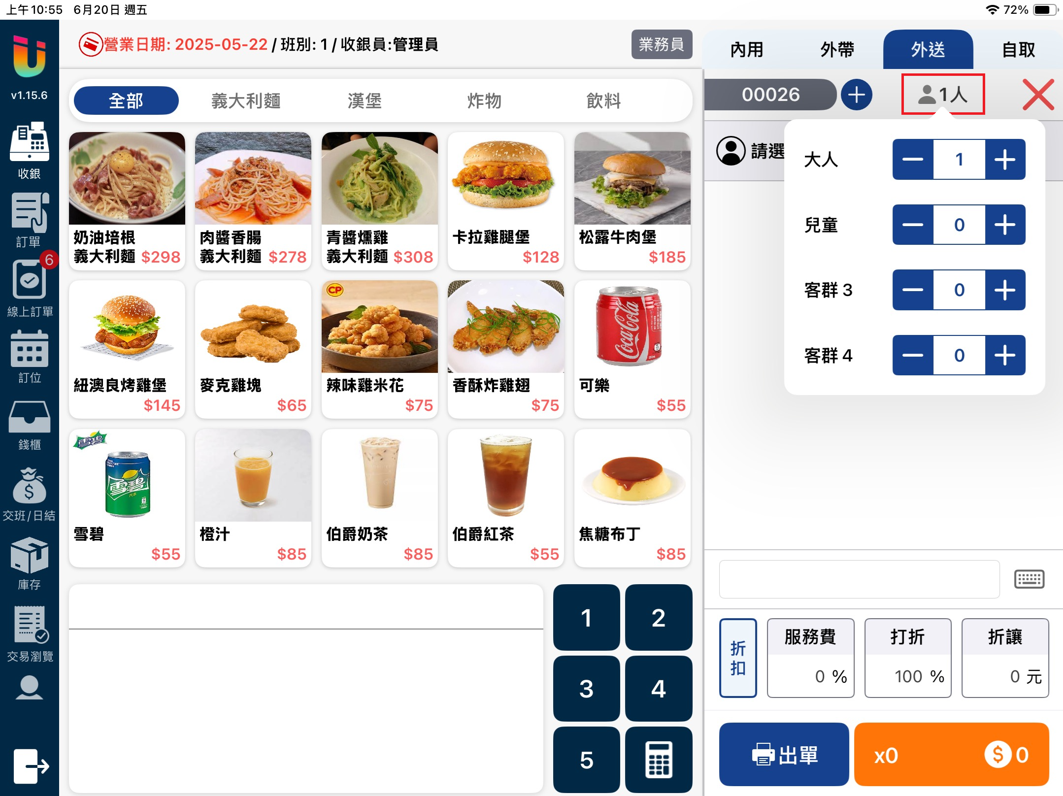 Ushow可以記錄每筆單據的 [來客數] 與 [客群],如有需要可於 [點餐介面] 右上角單據資訊欄,點擊 [來客數] 按鈕紀錄該筆單據的 [來客數] 與 [客群] 。