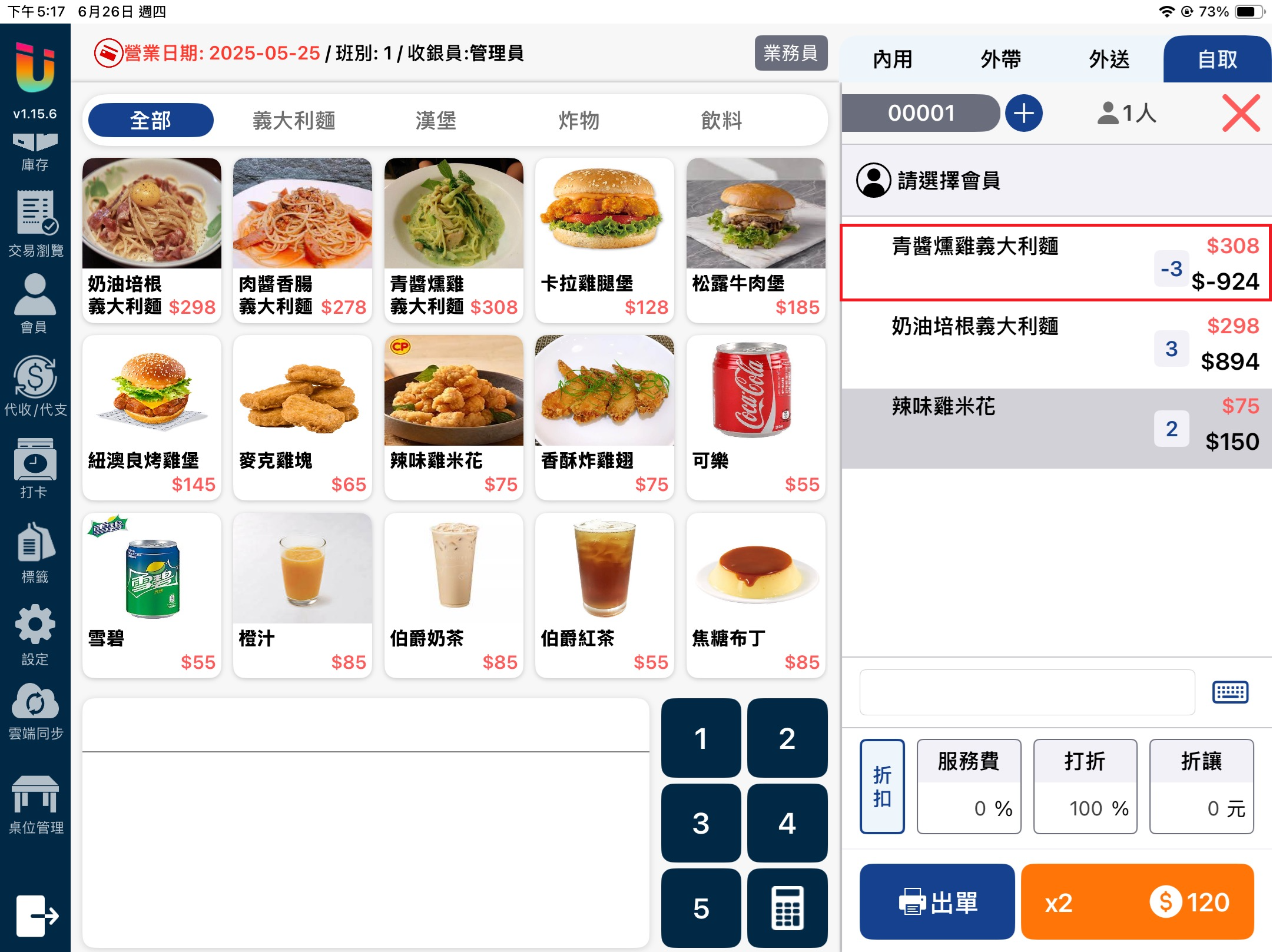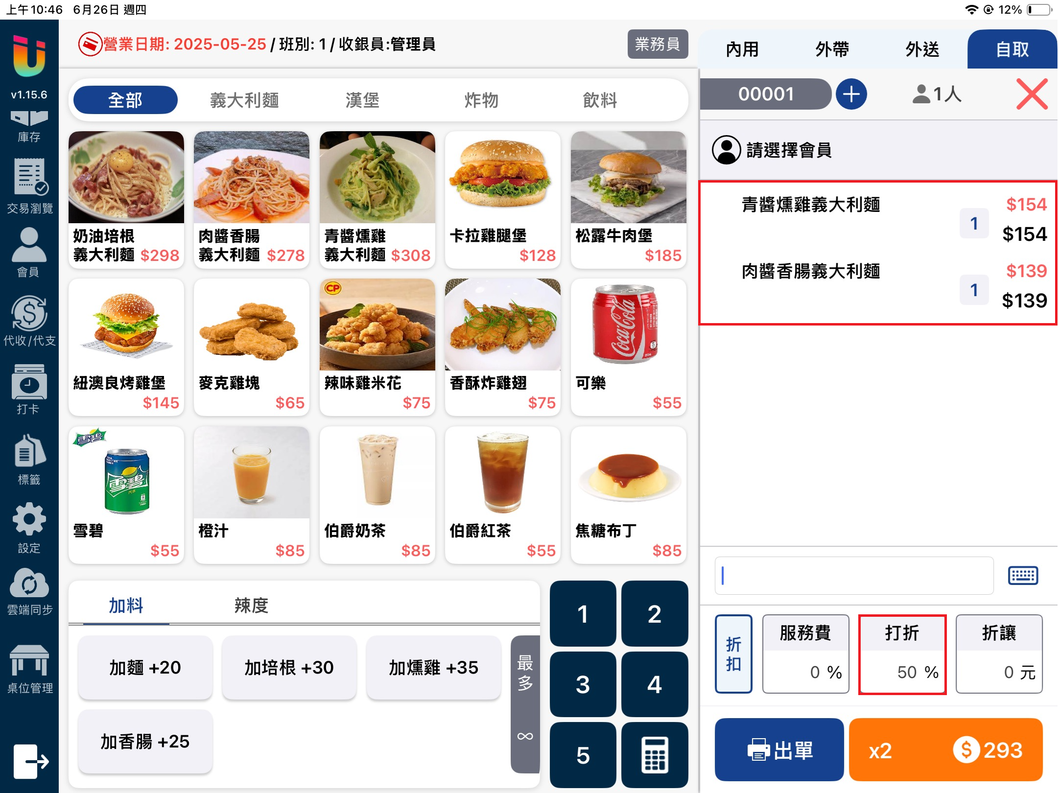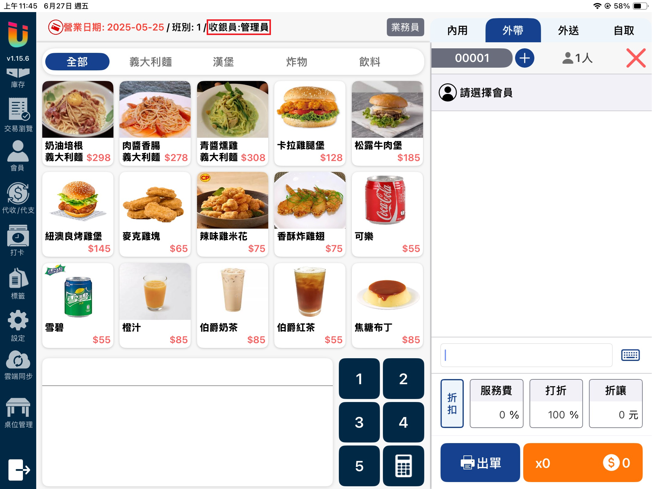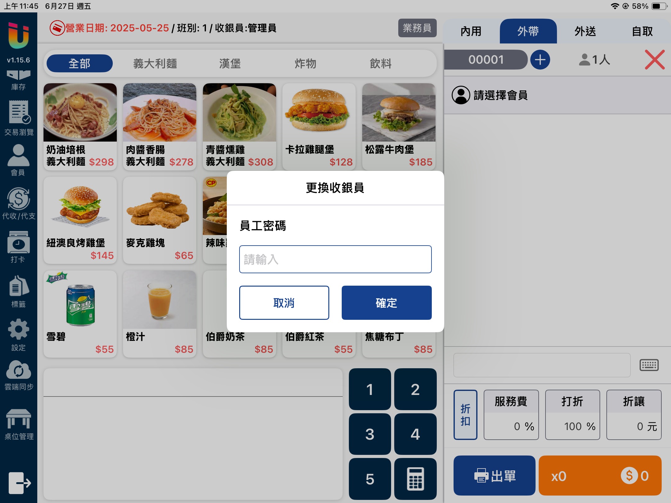 當該功能開啟時於 [點餐介面] 點擊上方的 [業務員] 按鈕,即可選擇該筆單據的業務員並記錄業績。