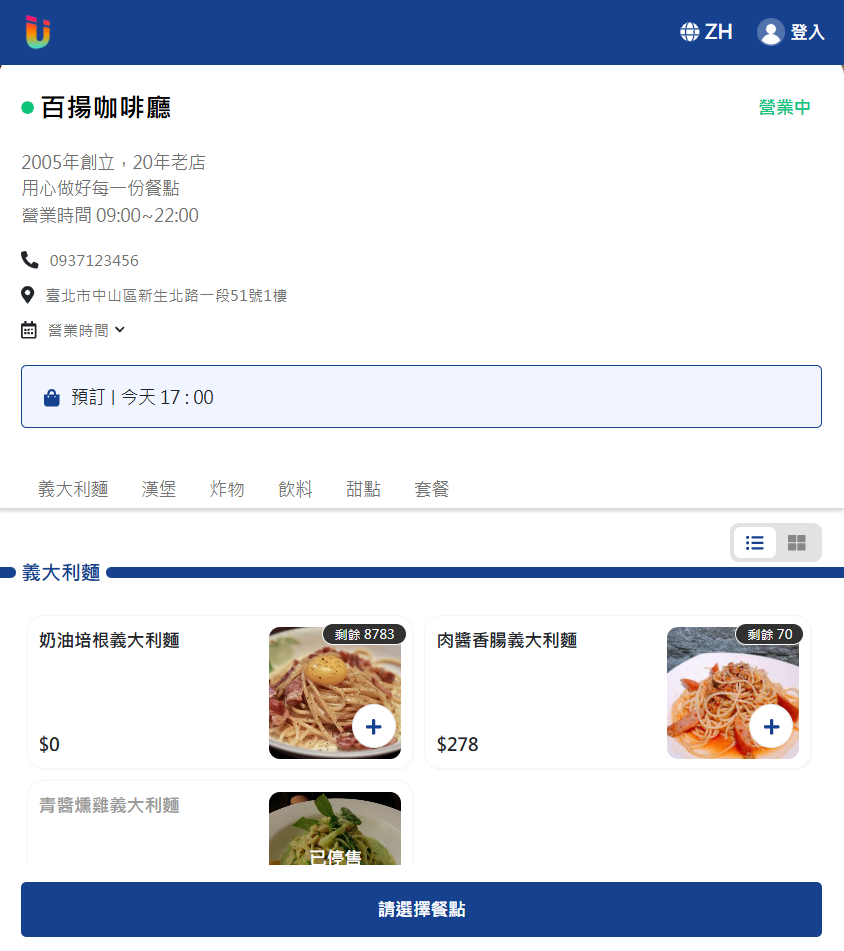 Ushow可以獨立設定線上點餐的菜單有哪些商品。