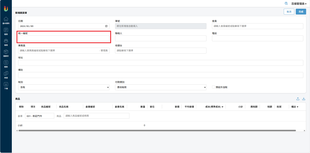 如要列印 [未稅額明細],除了將勾選取消掉外銷貨單還必須要有輸入 [統一編號] 才可列印未稅明細